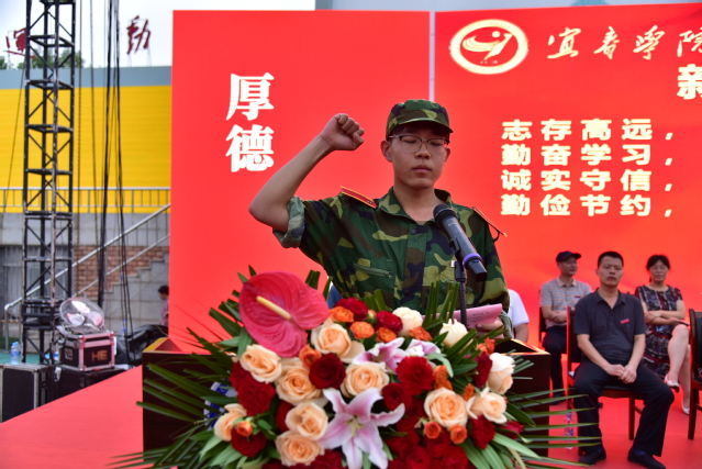 随后,校领导为新生代表佩戴校徽;2024级播音主持专业赵锦辉同学带领全体2024级新生宣誓。