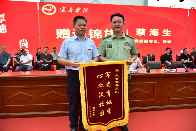 校党委副书记、校长蔡海生向武警宜春支队赠送锦旗,副校长梅光泉宣读了2024级本科新生军训工作的表彰名单。随后,校领导和部队领导为受表彰的集体和个人颁奖。