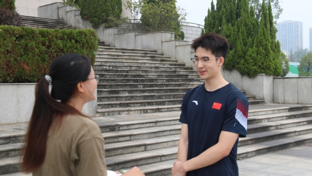 张高杰在学校接受学生记者采访