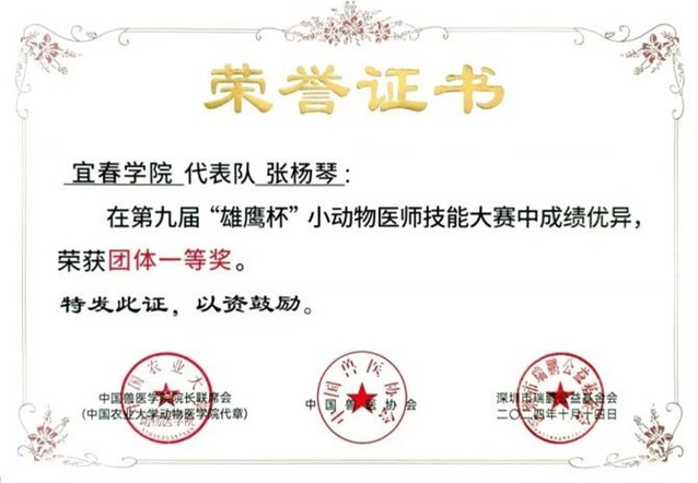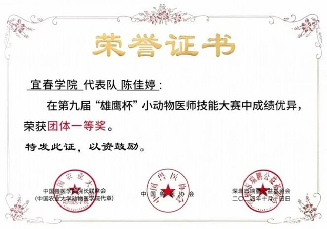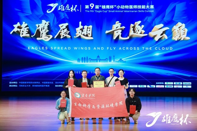 本站讯(生命科学与资源环境学院 供稿)2024年10月13日至14日,由中国兽医学院院长联席会、中国兽医协会、深圳市瑞鹏公益基金会主办,河南农业大学、新瑞鹏宠物医疗集团共同承办的第九届“雄鹰杯”小动物医师技能大赛在郑州举行。生命科学与资源环境学院动物医学代表队在大赛中再次荣获团体一等奖。