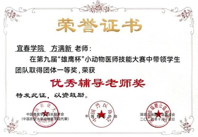 生命科学与资源环境学院动物医学专业指导老师分获优秀辅导老师奖一等奖