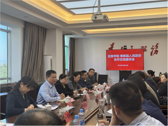 蔡海生向与会人员介绍了学院基本情况,并表示学校始终坚持“开门办教育”,将密切关注奉新县重点产业布局,充分发挥高校在教育、科技、人才等方面的综合优势,与县域经济发展同频共振、同题共答,不断推进校县产教融合、科教融汇、校企合作、协同育人,推动合作迈向更大范围、更宽领域、更高层次。