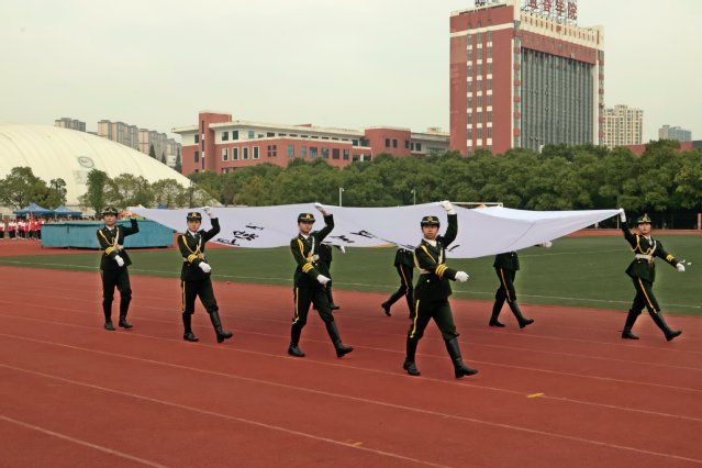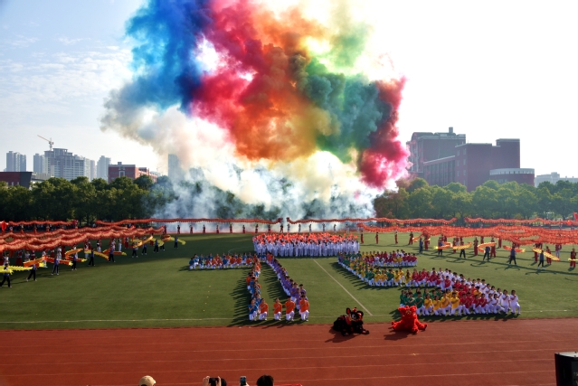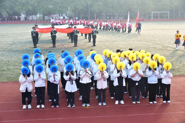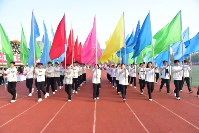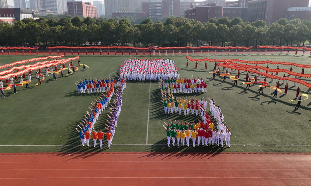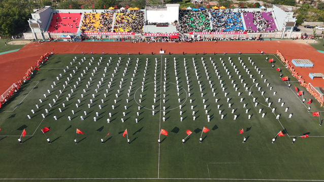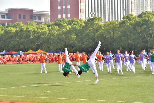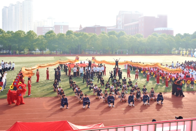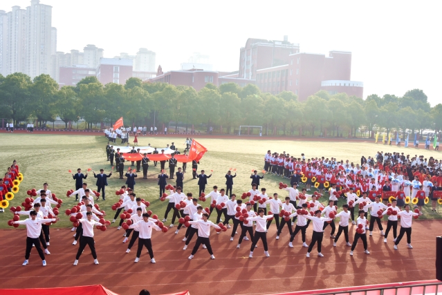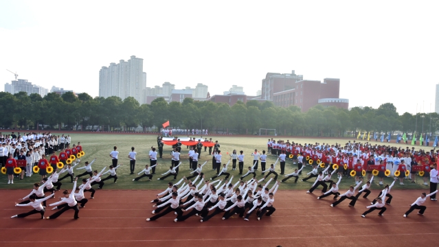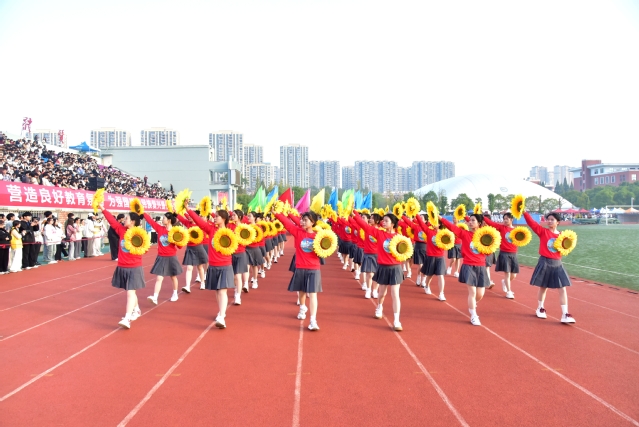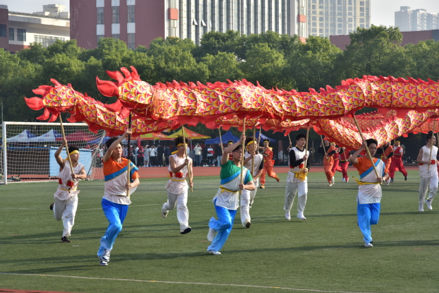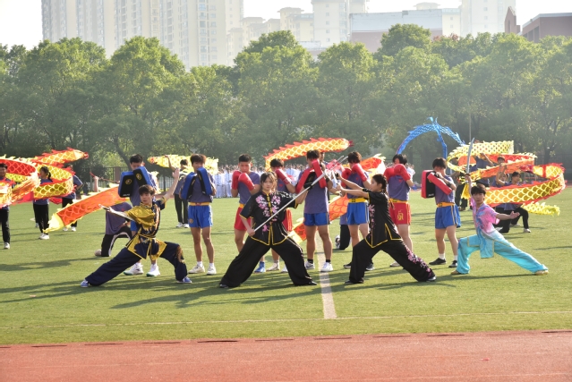 开幕式结束后,盛大的文体表演如同一幅绚丽多彩的画卷徐徐展开。数条艳丽的巨龙在操场上腾空而起,伴随着激昂的音乐,龙身翻转腾跃,所有巨龙在阳光下熠熠生辉,充分展示了舞龙者的气质和神韵,他们每一次的挥舞都蕴含着对中华优秀传统文化的敬意与传承。紧接着,武术和太极拳表演为开幕式增添了一抹刚柔并济的风采。武术表演者身姿矫健,拳风凌厉,刀光剑影中展现出中华武术的博大精深与无穷魅力,让人目不暇接。而太极拳方阵则如同一股清流,缓缓流淌在喧嚣之中,表演者们动作舒缓流畅,气定神闲,一招一式间尽显太极的阴阳调和、以柔克刚之美,仿佛时间在这一刻都放慢了脚步,让人心灵得到了净化与放松。随后,组合舞蹈表演将现场气氛推向了又一个高潮。健美操队伍以整齐划一的动作、充满活力的节奏,展现了青春的无限可能与热情洋溢;国标舞者们则以优雅的姿态、默契的配合,演绎了一段段经典而浪漫的舞步;啦啦操团队更是以热情奔放、动感十足的表演,用他们的笑容与汗水,点燃了全场的激情,每一个跳跃、每一次呐喊都充满了对运动精神的颂扬与对团队力量的彰显。这一系列精彩纷呈的表演,不仅展现了学子们的多才多艺与青春活力,更深刻诠释了体育精神与文化传承的和谐共生,为运动会开幕式画上了圆满句号。