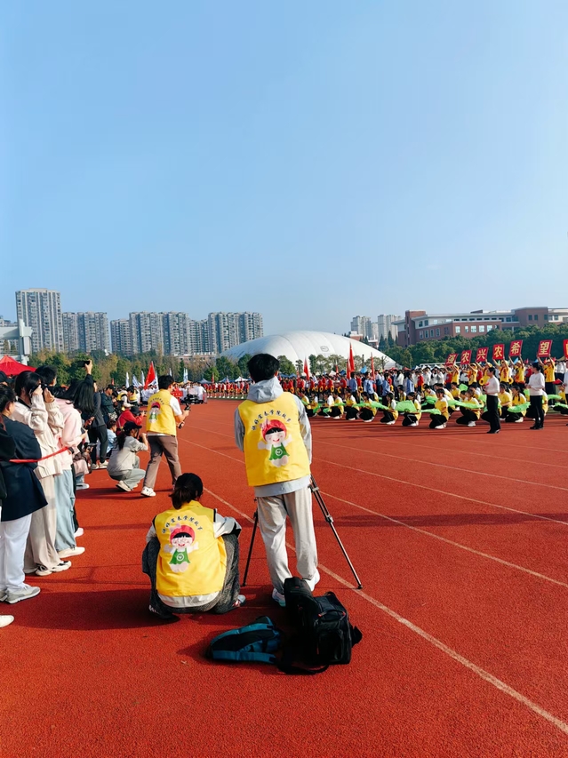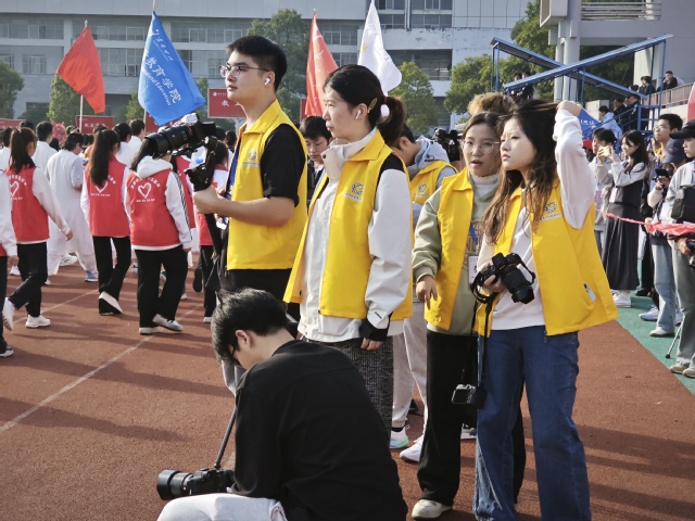 “让我们践行更高、更快、更强、更团结的奥林匹克格言,以分发向上的姿态,赛出风貌、赛出友谊、赛出水平!”校运会在广播台成员余子晗、陈鸿宇字正腔圆的解说词中拉开帷幕。与此同时,社群运营部和新媒体运营部也各司其职,将开幕式的精彩瞬间及时准确地传递给每一位YCUer。开幕式结束后,其他的部门也紧锣密鼓地开始了各自的工作,审稿、采访、拍摄、赛事播报……井然有序的工作保障了运动会新闻宣传工作的稳步进行。