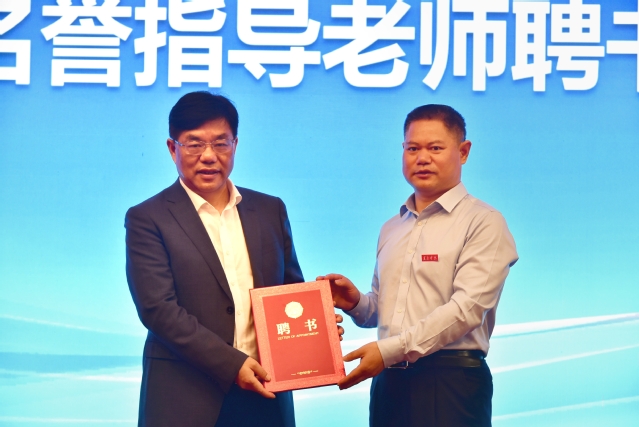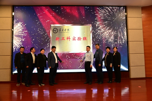 陈仙辉和全体在家校领导为新工科实验班揭牌,蔡海生为陈仙辉院士颁发名誉指导老师聘书。