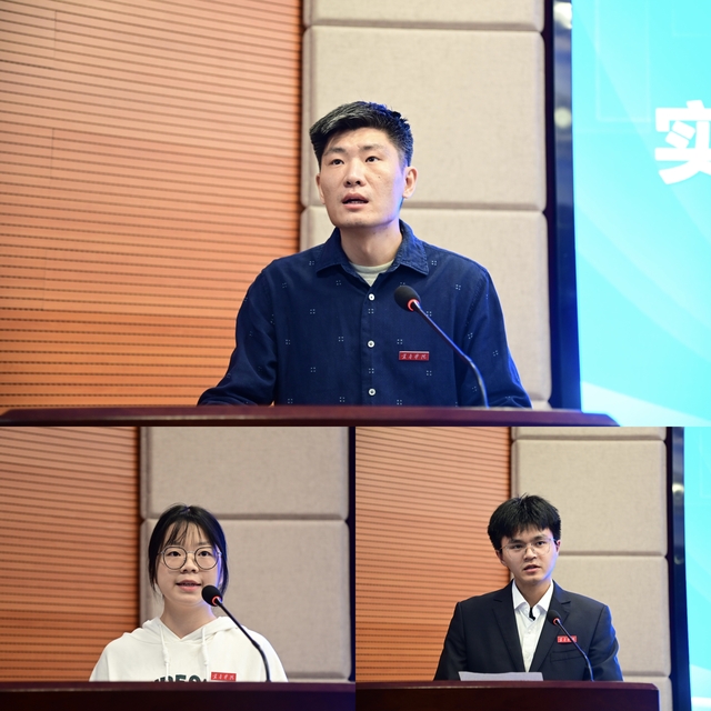 实验班导师代表物理科学与工程技术学院周雷清博士,实验班学生代表2023级应用化学专业曹媛、2024级计算机科学与技术专业温凯彬先后表态发言,他们的发言展现了beat365平台官方网站新工科实验班师生的积极态度和坚定决心,表达了每一位参与者对于新工科建设的热情与期待。