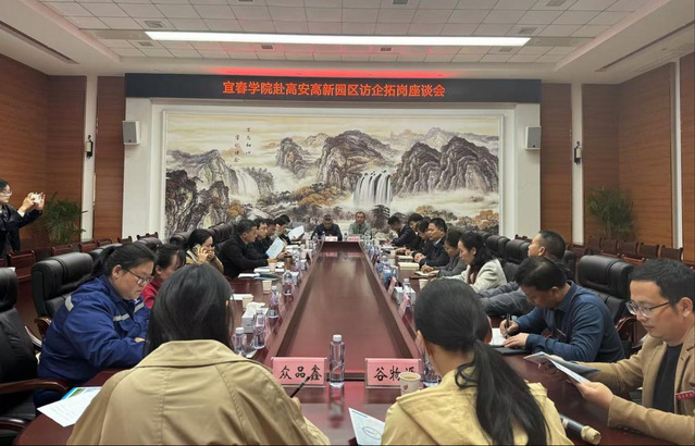 随后,蔡校长一行来到高安市高新园区召开访企拓岗座谈会。高安市委常委、副市长、高新园区党工委书记习杰斌主持会议,市领导甘辉龙、人社局主要负责同志、园区相关负责同志与会。会上,天孚光电技术有限公司、通瑞新能源科技发展有限公司、龙锐(江西)机械有限公司等10家企业代表结合实际畅谈了引才和用工需求,希望实现用人单位和育人单位的双向奔赴、无缝对接。蔡海生表示,学校将积极回应企业在用人方面的共性、个性需求,了解企业在科技研发方面合作需求,积极开展订单式人才培养,为企业举办好专场人才招聘会。