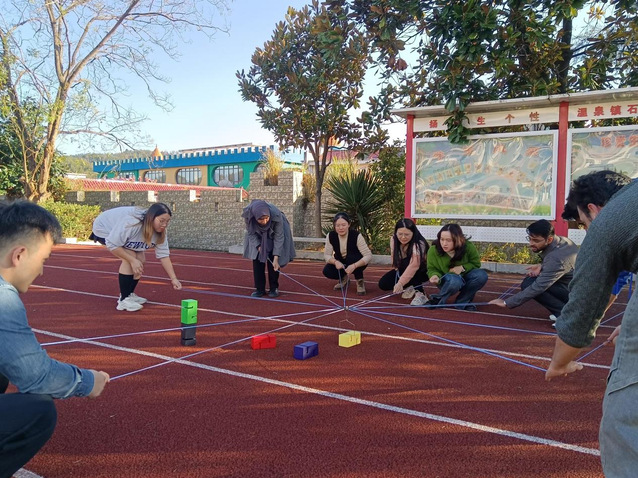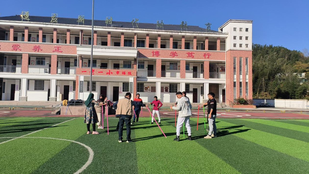 下午,大家参观了上四坊高新技术产业园的“两山”理论实践创新基地,直观地了解了羊肚菌的种植技术和古树青钱柳茶文化。随后,在石桥村小学,师生们分两组开展了素质拓展活动。通过“不倒森林”和“合力筑塔”等团队协作游戏,大家在轻松愉快的氛围中增进了彼此的默契与信任。