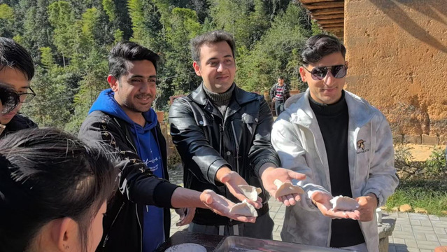 29日上午,师生代表一行抵达铜鼓县温泉镇石桥村。首先参观了村史馆,通过展品和图片,大家对石桥村的历史和发展有了更深入的了解。随后,举行了实践教学基地挂牌仪式。留学生们则有机会亲身体验铜鼓特色美食包圆的制作过程,感受当地独特的饮食文化。
