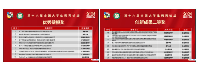 此外,在刚刚闭幕的第十六届全国大学生药苑论坛中,杨灵光与尹培培两位老师指导的22级药学专业本科生胡铭仪、胡晓及21级制药专业本科生邓闯以“苦丁茶冬青属来源植物生物活性成分及重金属比较分析”为参赛题目,获得了创新成果二等奖及优秀壁报(排名第一)的佳绩。