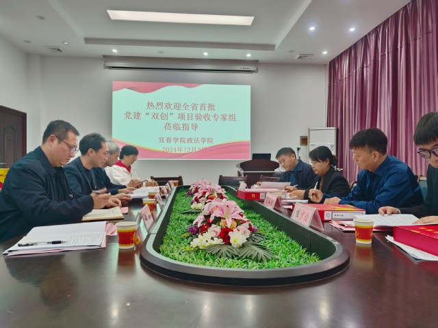 本站讯(政法学院 供稿)根据省委教育工委工作安排,12月2日,由江西中医药大学党委党校副校长兼党委宣传部副部长张卫平任组长的省委教育工委党建“双创”工作评估验收组一行4人,对政法学院党建“双创”工作进行评估验收。学校党委组织部副部长黄国斌、学院党委书记江海华、院长刘天杰及党建“双创”工作样板党支部工作负责人参加会议。