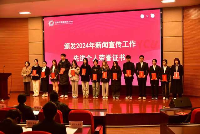 随后融媒体中心指导老师叶杨、叶茂菲分别宣读了第三届融媒体中心评优名单、2024年新闻宣传工作先进个人名单和第四届融媒体中心的骨干名单并进行现场颁奖。