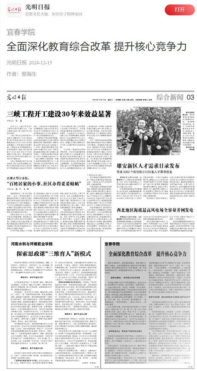 本站讯(记者 袁璐)12月14日,光明日报刊发beat365党委副书记、校长蔡海生的署名文章:《全面深化教育综合改革 在分类办学中提升办学核心竞争力》。