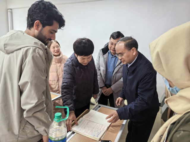 随后,在校党委委员、纪委书记张梅的陪同下,前往厚德校区,在国际交流与合作处,李书记一行看望留校过年的留学生,亲切询问他们在中国过年的感受和生活情况,向他们介绍中国春节的传统习俗,让留学生们感受到家的温暖。并听取国际交流与合作处假期教学和学生管理工作的汇报。他表示,国际交流对于学校的发展至关重要,希望国际交流处能够在新的一年里积极拓展国际合作项目,提升学校的国际化水平,为师生创造更多的国际交流机会。
