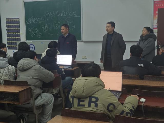 本站讯(特约通讯员 易柳)为深入了解学生返校后的学习生活状态,激励同学们以饱满的热情和昂扬的斗志投入到新学期的学习生活中,2月17日晚,校党委副书记、校长蔡海生,校党委副书记严青松等一行深入教室,进行新学期的首次晚自习巡查。