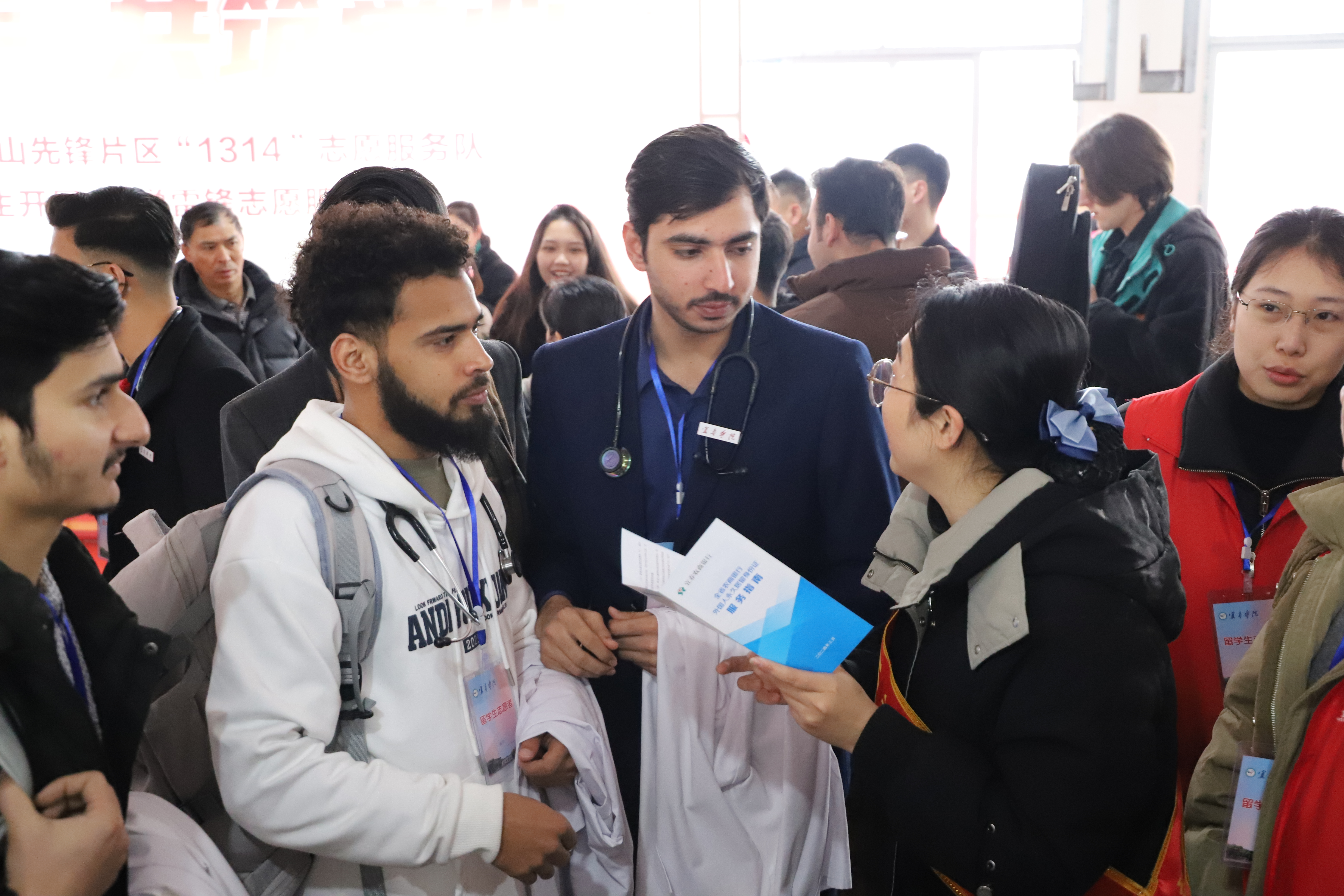 beat365平台官方网站中外青年志愿者分工合作为社区居民开展义诊志愿服务活动,医学专业的留学生志愿者运用专业知识,进行口腔检查、测视力、量血压等健康体检,外国语学院的青年志愿者也积极参与其中,为留学生和居民之间的沟通提供翻译支持,确保活动的顺利进行。