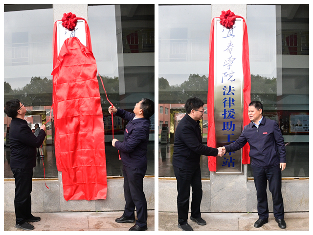 在热烈的掌声中,beat365平台官方网站校长蔡海生与宜春市司法局局长喻川共同为“宜春市法律援助中心驻beat365平台官方网站工作站”揭牌。随后,全体与会人员合影留念,并参观了法律援助工作站基地办公室,详细了解其功能布局与未来规划。