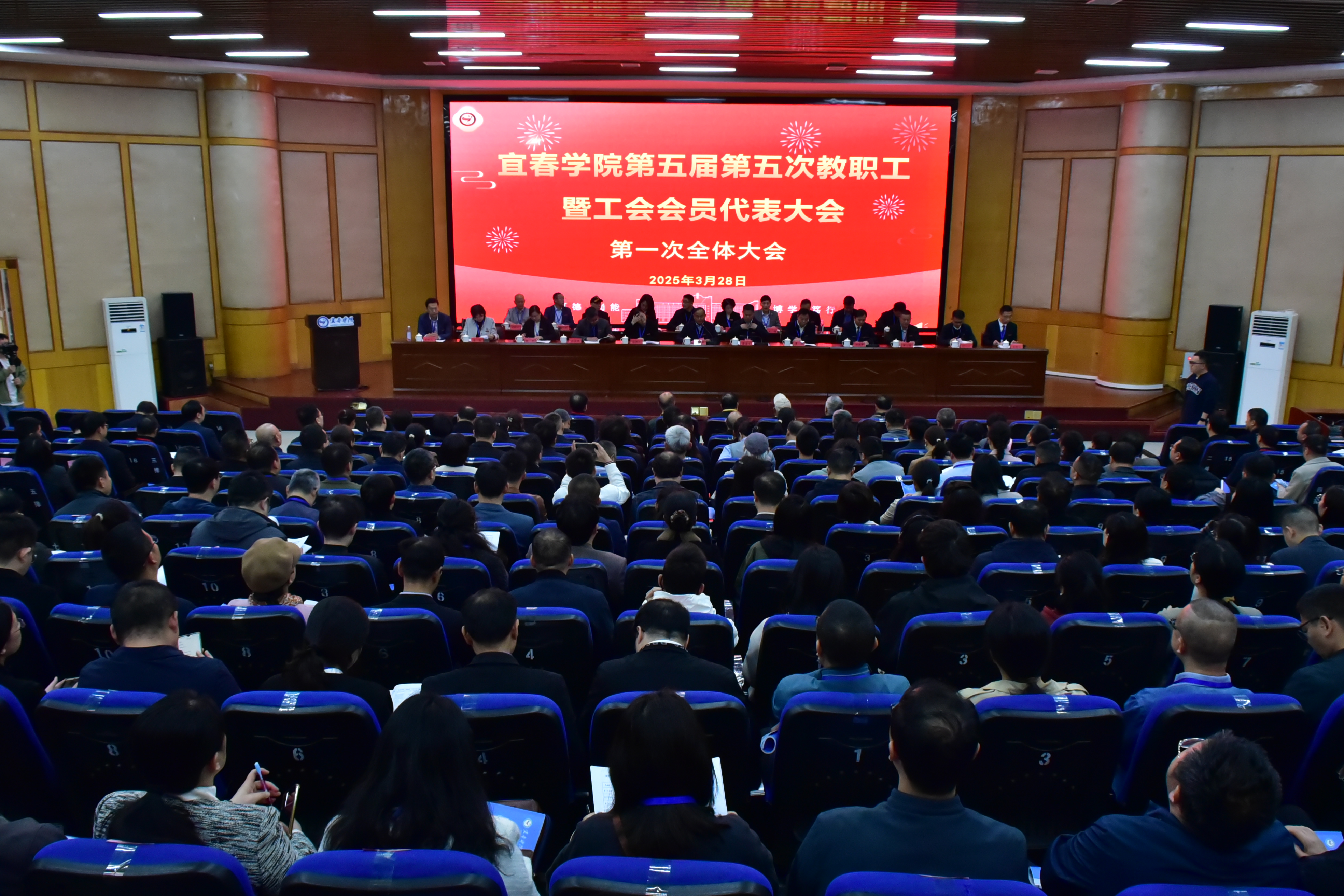3月28日下午,beat365平台官方网站第五届第五次教职工暨工会会员代表大会第二次全体会议在学术报告厅举行。全体校领导和主席团成员在主席台就座。会议由校党委副书记、校长蔡海生主持。
