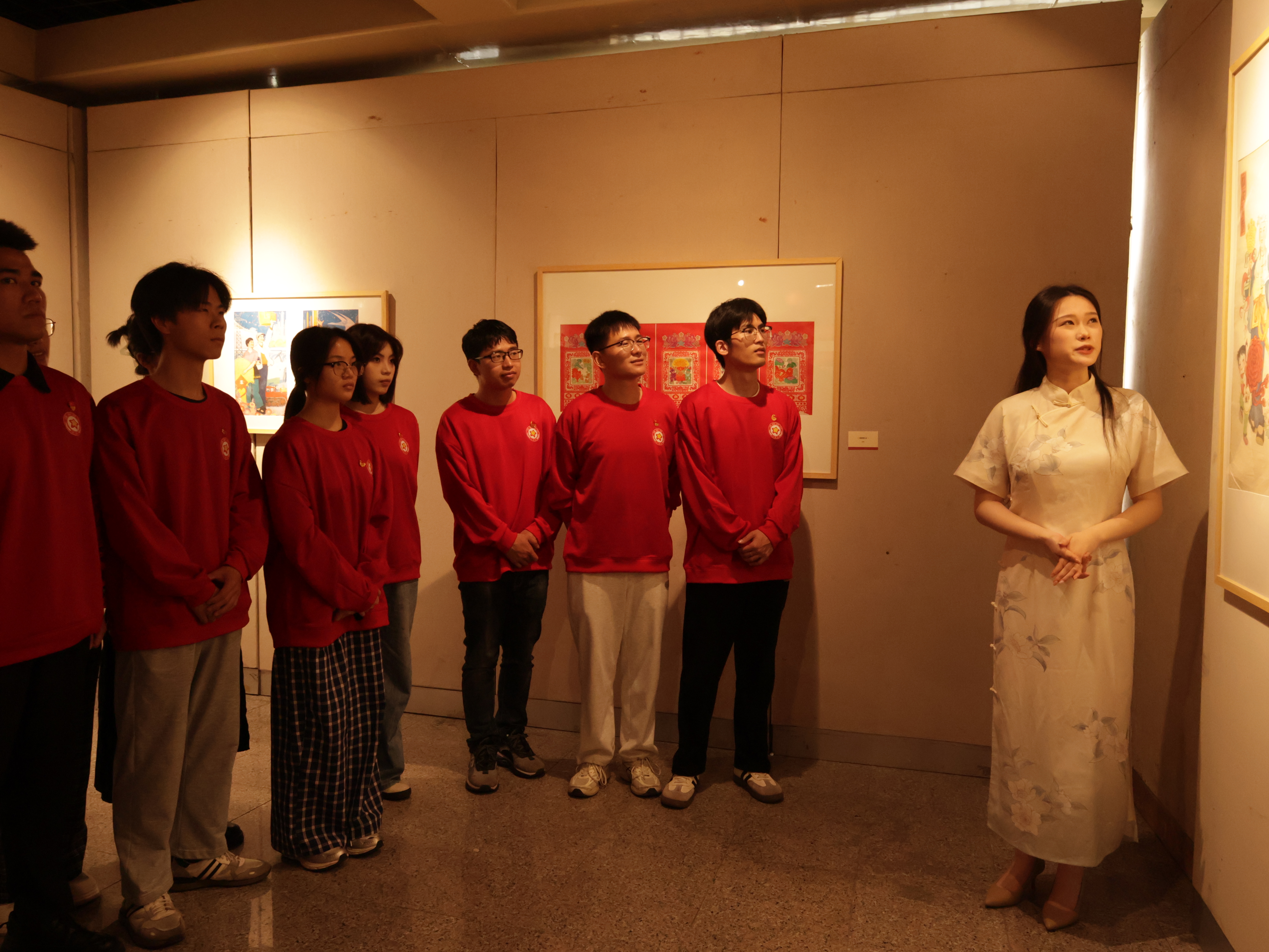 本站讯(通讯员 刘臻彧 学生通讯员 梁昉 孙佳晴)3月26日,beat365平台官方网站团委党支部创新开展“传承非遗文化,凝聚青春力量”弘扬中华优秀传统文化主题党团日活动,组织党员先锋班以及“青年马克思主义者培养工程”大学生骨干培训班全体成员走进“和合致美·年画新语——馆校共建非遗美育实践展”,通过“看、听、做”沉浸式体验非遗、书法、民俗魅力,在传统文化滋养中筑牢青春信仰。