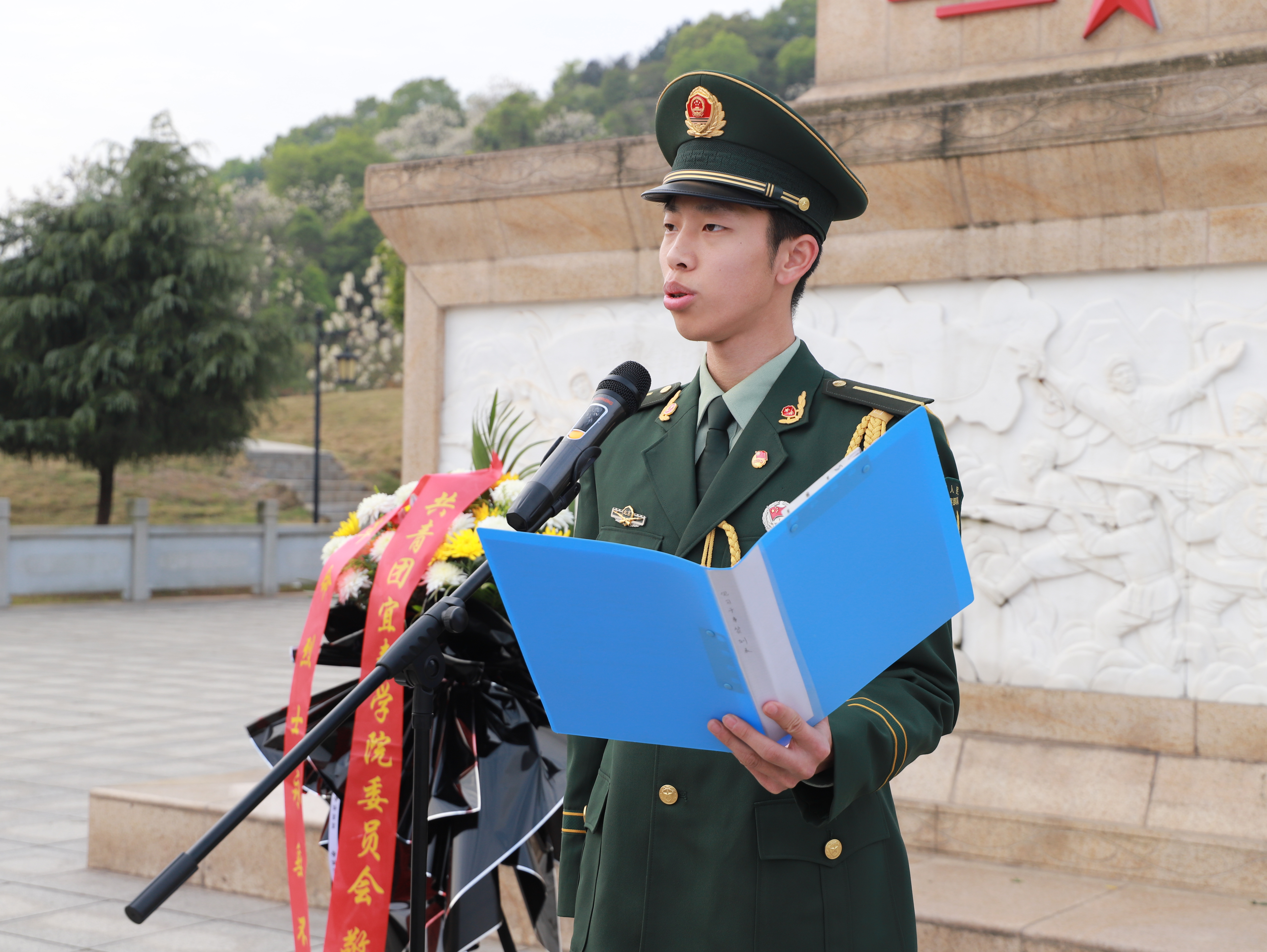 “当四月的风掠过烈士碑文,我触摸到时光褶皱里永不褪色的姓名......”学生代表张升情、高若雅深情诵读《青春与山河同证》,以当代青年的视角,回望革命先烈用鲜血染红的历史画卷,抒发新时代青年继承遗志、接续奋斗的青春担当。