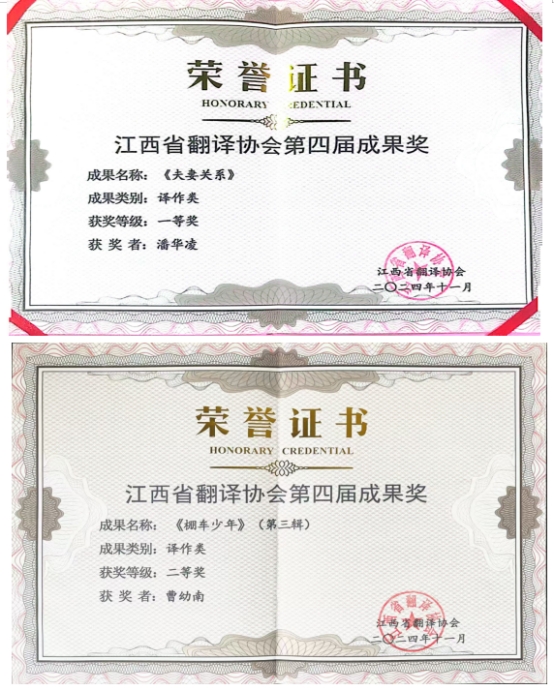 本站讯(外国语学院 供稿)近日,江西省翻译协会公布第四届全省优秀翻译成果奖评选结果。“资深翻译家”、beat365外国语学院外聘教授潘华凌翻译的《夫妻关系》获译著类作品一等奖,曹幼南等教师合译的《棚车少年》(第三辑)获二等奖。