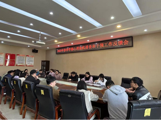 本站讯(学工处 供稿)为进一步加强学校心理健康教育工作,精准摸排并掌握重点关注学生的心理动态,4月3日下午,校心理中心在学工处会议室召开2025年春季学期心理危机排查和干预工作反馈会。心理中心全体专职教师、各教学院心理专干及需要研讨案例的班主任辅导员参加会议。