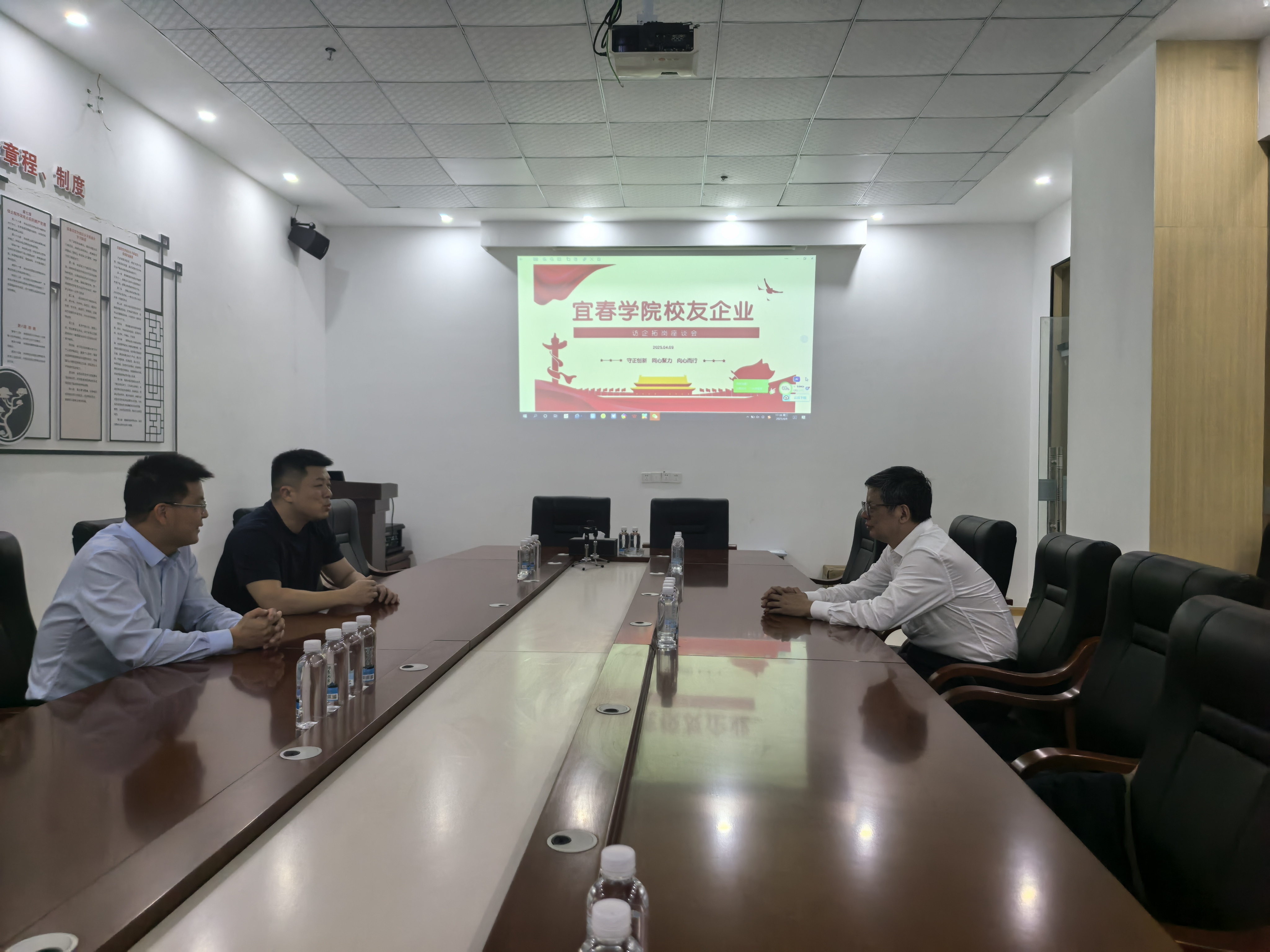 在随后的座谈会上,李松伟向母校领导介绍了企业的发展历程、经营理念以及未来规划。邱家明介绍了母校近期的发展情况,他表示,母校一直致力于培养高素质的人才,为经济社会发展做出贡献,同时也非常注重与企业的合作,希望通过校企合作,实现资源共享、优势互补,共同推动产学研深度融合。在交流中,邱家明特别提到了校企合作的重要性,并诚挚邀请江西翰飞通讯科技有限公司参加母校即将举办的春季招聘会。他表示,春季招聘会是学校为毕业生和企业搭建的重要对接平台,希望企业能够借此机会,选拔到更多符合企业需求的优秀毕业生,为企业的持续发展提供人才支持。