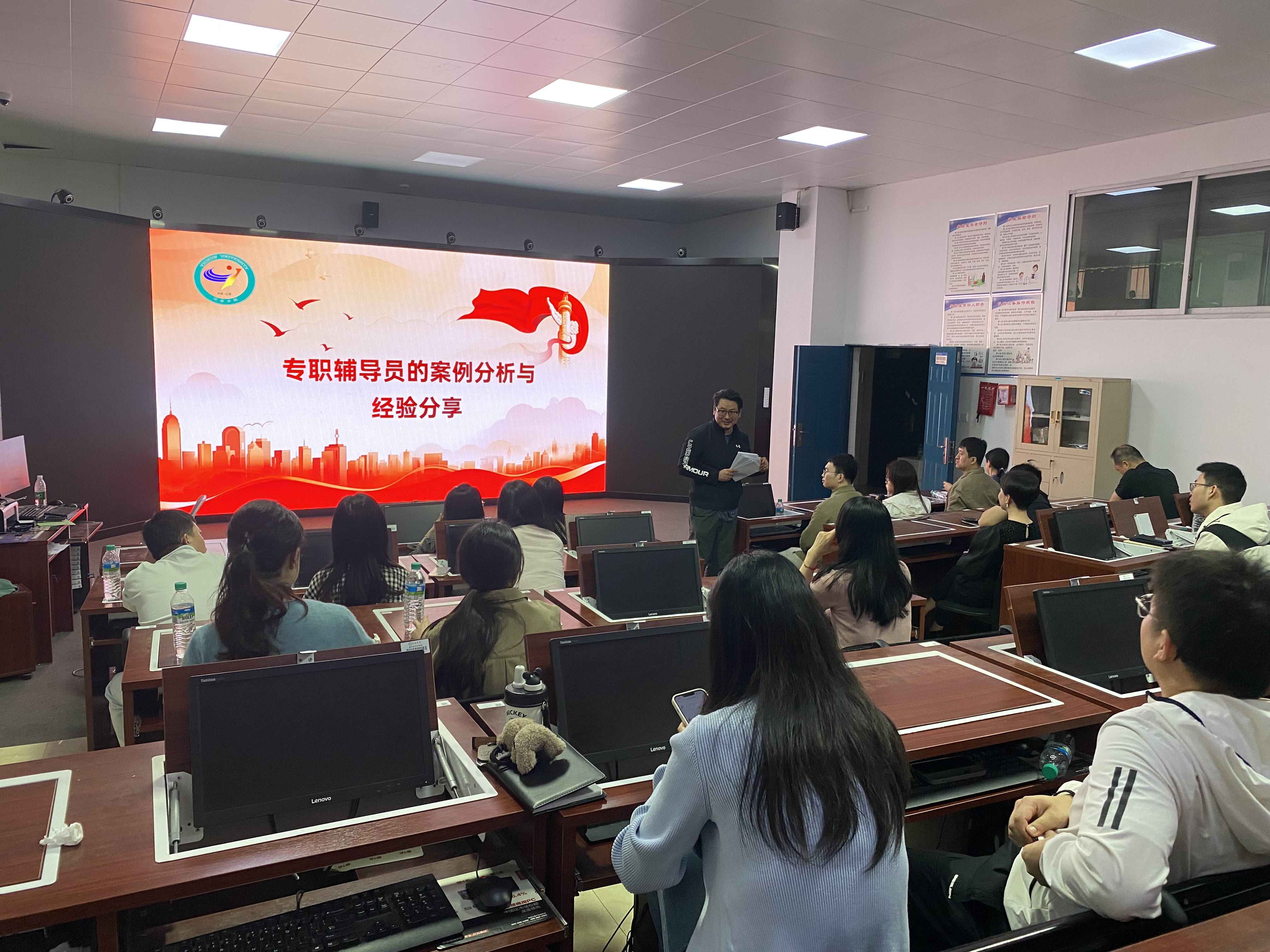 本次活动分为两个阶段,第一阶段为主题讲座。本次讲座由化学与生物工程学院博士、教授陈春林讲述中医药养生知识,讲座中他强调中医的重要作用,并分享中医对身体及心理调节的有效方法。第二阶段为案例分析与经验分享。此前罗列了学生管理工作中面对的适应、学业、人际关系、心理及团体辅导五个方面的20个案例,大家分组抽签领题,然后各组成员对抽签的案例进行分析和讨论。在规定的时间内各组成员就案例情况充分表达意见,现场讨论异常热烈。之后,各组选派一名代表进行案例分享,他们从案例解决思路、预期干预效果、启示与思考及有待探讨的问题等进行阐述,开展互动交流,共攻工作难点,共商解决办法。