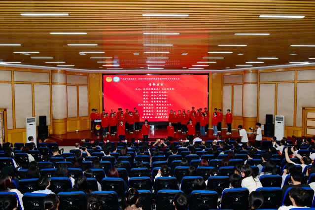青年学生代表、外国语学院毛聪颖发言,她从自身实践经历出发,呼吁新时代青年要坚定理想信念,厚植家国情怀,练就过硬本领,发扬奋斗精神,以实际行动践行“请党放心、强国有我”的青春誓言。