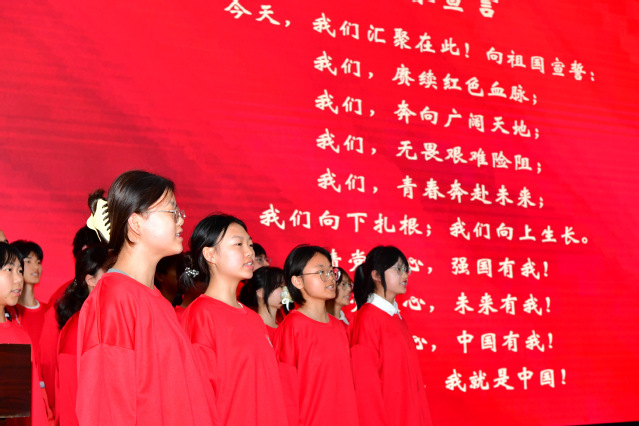 大会现场,青年学生代表们齐声喊出“请党放心,我就是中国”的青春誓言,展现出“青春为中国式现代化挺膺担当”的坚定决心。