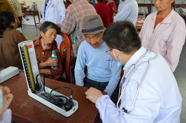 在铜鼓县石桥村,两校联合义诊团队搭建起“流动健康驿站”。西医组开展内科、外科检查及血糖、血压监测,中医组开展中医诊断、针刺疗法、推拿治疗。上海中医药大学团队提供的智能体质辨识仪吸引村民驻足体验,为村民提供个性化诊疗方案获得大量好评。