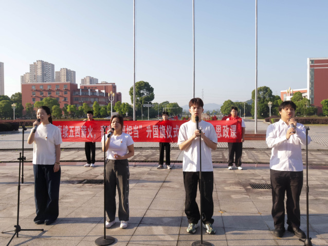 升旗仪式结束后,国旗下的思政课环节拉开帷幕。学生代表赵锦辉、张钰涵、李姝彤、贺苗苗带来了激情澎湃的朗诵《青春之光,召见山河滚烫》,发出“以青春之我,创建青春之家庭,青春之国家,青春之民族”的豪迈宣言。