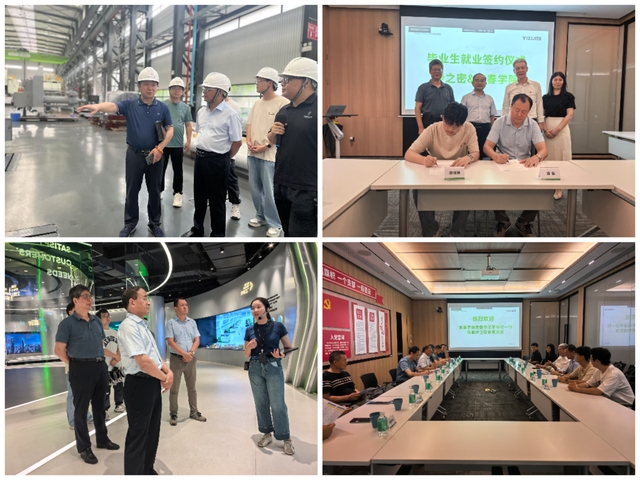 在广东伊之密精密橡塑装备科技有限公司,走访团参观生产车间、研发中心后,与企业探讨人才培养与产学研合作。企业表达强烈合作意愿,现场举行签约仪式,6 名应届毕业生与企业签订就业协议。企业人力资源总监陈鹏博士称赞毕业生专业扎实、素养良好,期待他们为企业注入活力。李国金祝贺毕业生并勉励其在岗位成长,同时希望企业与学校共同做好人才培养。
