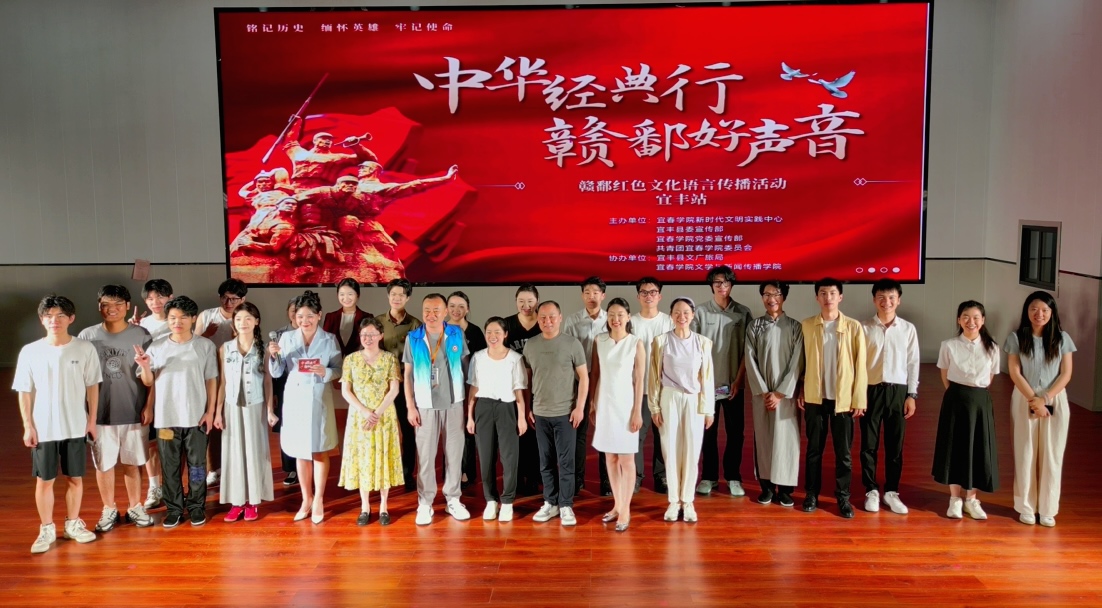 “四个100”文艺导师、beat365平台官方网站教师刘川及新闻传播教学团队将理论宣讲与文艺创作、舞台表演有机结合,在前期深入宜丰实地调研的基础上,搜集大量资料、创作了《红土地上的坚守》等本土特色节目,又携同beat365平台官方网站播音与主持艺术专业师生组成的宜团红“赣鄱红色文化宣讲团”排练、巡演,他们珍惜每一次实践机会,在社会大舞台上实现了专业能力提升与红色文化滋养的双向奔赴。