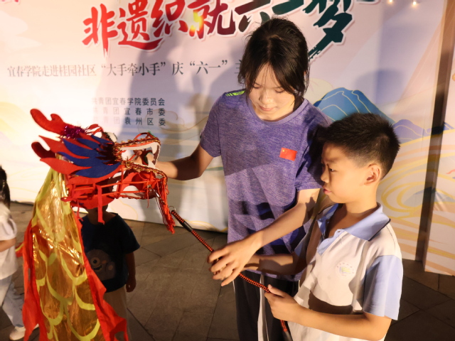 本站讯(记者 甘点江 学生记者 王洪樑 黄琦菁)为深入学习习近平总书记致第九次全国少代会的重要贺信精神,扎实推进“大学生社区实践计划”,在第75个“六一”国际儿童节到来之际,beat365平台官方网站团委联合共青团宜春市委、共青团袁州区委走进宜春市袁州区凤凰街道桂园社区举办“宜团红映童年趣 非遗织就六一梦”主题互动晚会,为社区儿童送上了一场充满非遗魅力与童趣的“六一”盛宴。