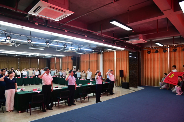 随后,全体党员面向党旗庄严宣誓,铿锵有力的誓言回荡在会场,彰显了新时代党员永葆初心、接续奋斗的坚定决心。