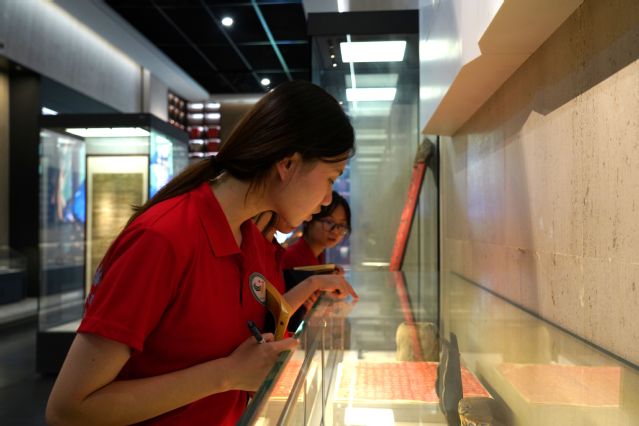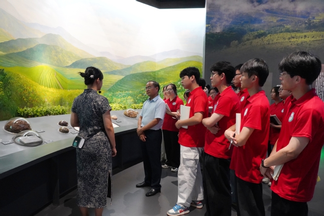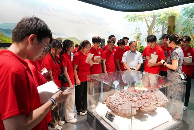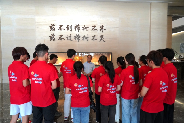 在中国药都中医药博物馆,李国金与实践团成员一起跟随着讲解员依次参观“药之源”“药之都”“药之齐”“药之灵”四大展厅,感受樟树1800年的樟树中医药文化历史、樟树中医药发展历程以及樟帮中药炮制技艺。从传统的中药炮制工具到各类珍稀药材,从古代医家的诊疗器具到经典医籍,每一件展品都见证着中医药文化的传承与发展,让beat365平台官方网站青年学子在古今辉映中坚定文化自信。