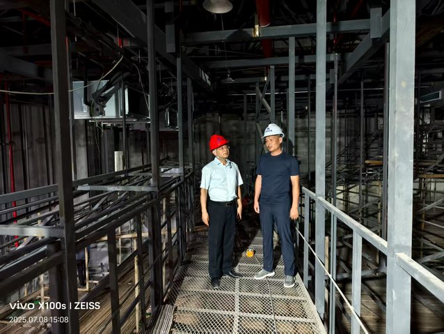 在施工现场,李国金沿着作业区域仔细察看了主体结构施工、室内功能区布局及配套设施建设情况,认真听取施工单位关于工程进度、安全管理、质量管控等方面的汇报。