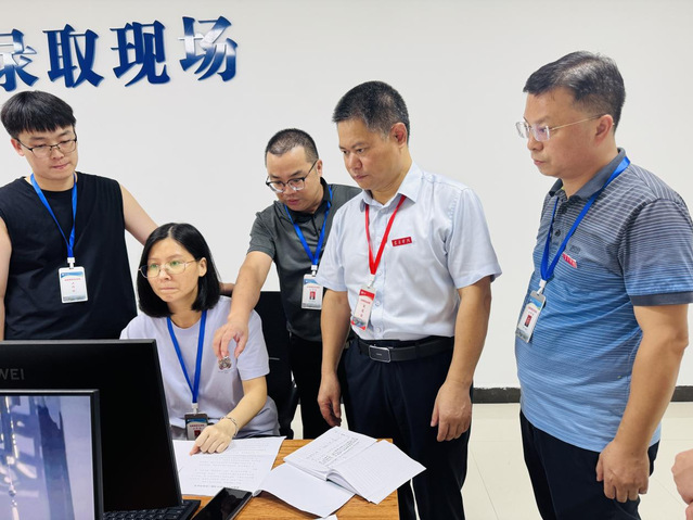 在录取现场,蔡海生、邱家明分别听取了招生就业处处长段军平、副处长黄义强关于江西投档的情况汇报,仔细查看了考生档案审阅流程及相关数据,并对录取工作进行了强调与要求。