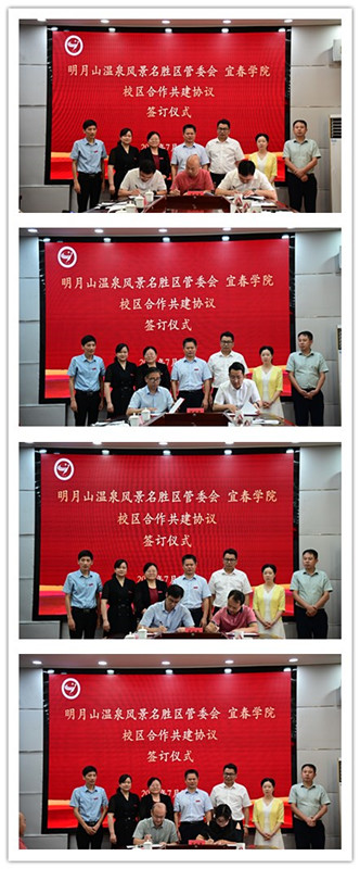 随后的签约仪式上,在全体与会人员的共同见证下,双方签署了“1+4”合作协议,标志着校地合作迈入新阶段。明月山区的优质资源将成为学校实践教学、科研创新和文化育人的重要平台,双方将在多维度展开深度合作,共同打造校地合作共建共享共赢的亮丽名片。