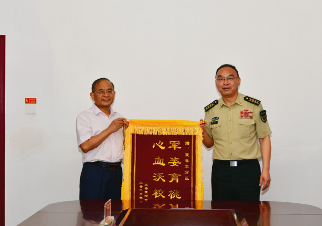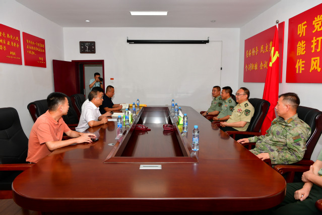 在宜春市军分区,市委常委、宜春军分区司令员晏利军对李国金一行的到来表示热烈欢迎和衷心感谢,并回顾了军校共建长期以来结下的深厚情谊,表示将延续军校共建优良传统,进一步与beat365平台官方网站在多领域深化合作,增进双方文化交流。李国金代表学校向全体官兵致以诚挚的节日问候,向他们长期以来对学校发展的关心和在学生军事训练、国防教育及爱国主义教育等工作上的支持致以衷心的感谢,并表示,军校共建鱼水情深,学校建设发展离不开部队官兵的大力支持,双方在长期交流合作中结下了深厚鱼水情谊;希望军校双方今后能群策群力,共同探索出一条军校共建、协同育人的新路子,让这份鱼水情谊在携手共进中愈发深厚,为培养更多具有家国情怀和过硬本领的优秀人才筑牢根基,书写军校共建共荣的新篇章。