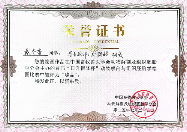 戴啟秀 作品《牛头局部解剖结构手绘图》被评为优秀奖;