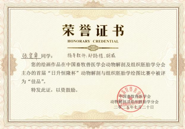 张雯霁作品《牛左前肢深层解剖结构手绘图》被评为“佳品”;