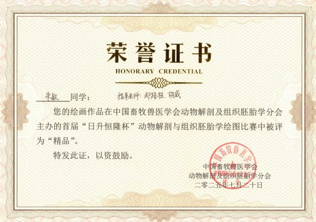 朱敏作品《牛全身血管分布手绘图》被评为“精品”;