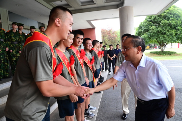 本报讯(校人民武装部 供稿)金秋送爽,丹桂飘香。9月11日上午,beat3652025年秋季征兵欢送仪式在行政办公楼举行。一批经过严格选拔的优秀青年,身着崭新戎装,胸戴鲜艳红花,精神抖擞、意气风发,即将告别校园,奔赴军营,开启保家卫国的光荣征程。校党委书记李国金,校党委委员、副校长邱家明,校人民武装部部长周卫平、各院党委书记、教师代表、学生代表参加了欢送活动,欢送仪式由邱家明主持。