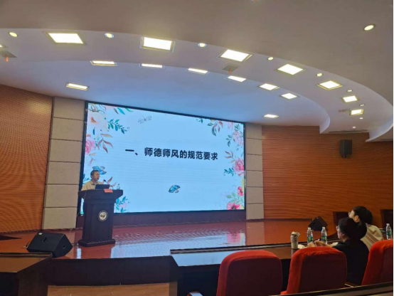 蔡海生围绕“学校发展与青年教师个人成长”,从“我们共同的学校”“共同的事业”“共同的成长”三个维度,系统全面的介绍了校情校史、办学理念与发展规划,并结合实际为教师成长提出了建设性意见。