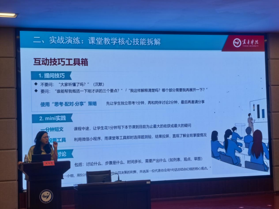 培训还邀请优秀教师、专家学者、职能部门代表分享经验。内容涵盖“怎样成为一名好老师”的经验分享以及教学技能、心理健康教育、智慧课程教学工具使用、竞赛指导与人事、科研、教学管理等政策解读。期间,受培训教师还参观了校史馆、廉政教育馆和红色文化长廊。