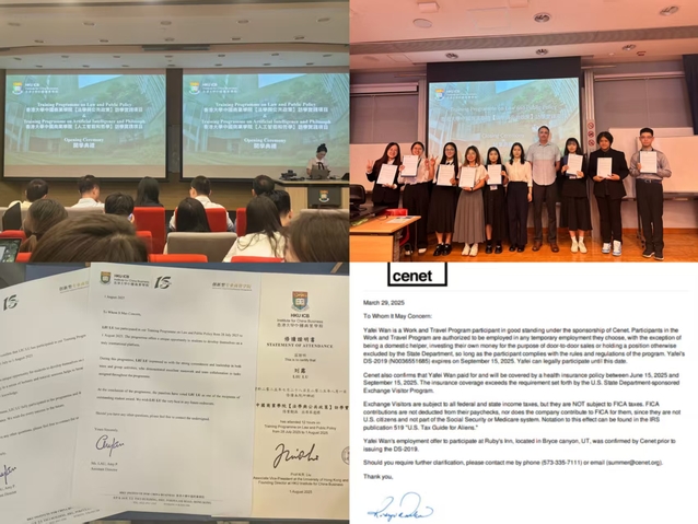 国(境)外长短期研学和实践项目不仅为beat365学子提供了高水平学术平台和国际交流平台,让beat365学子体验了不一样的“国际化”假期,更是他们勇敢走向世界,在国际交流与合作中展现中国青年风采与担当、知行合一的最佳诠释。7月27日,政法学院23级法学专业刘露、卢珺仪,24级城市管理专业廖奕婷与来自全国多所高校的优秀学子赴香港大学参加了为期一周主题为“法学与公共政策”短期研学项目,项目内容涵盖专题学术课程、大师讲堂及文化体验等内容。外国语学院24级法语班学生万亚菲赴美国犹他州参加暑期社会实践项目,在实践中提升语言的应用能力。这些不一样的假期经历,满载而归的体验,不仅标志着学生国际化视野的拓宽与跨文化沟通能力的提升,也为beat365国际化人才培养模式的不断深化,持续拓展高水平国际合作与交流新篇章奠定了基础。