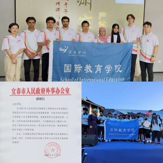 这个暑假,beat365国际合作与交流的足迹不仅迈向全球,更深植于宜春沃土,以实实在在的行动诠释了高校外事工作服务地方经济发展的新内涵,展现了“不一样”的担当与作为。今年8月,我处国际交流科姜璇副科长以高度的政治责任感、精湛的外语能力和出色的综合素质,密切配合宜春市人民政府外事办公室,顺利完成了2025年江西省友城联络人研修班在访问宜春期间的外事活动,得到了市外办的高度认可。同时积极配合宜春市融媒体中心、宜春市妇联和明月山管委会等部门,选派优秀留学生们参加“瓷韵农耕·青春筑梦”“水江假发基地参观”“明月山夏日追光夜跑活动”“明月山七夕晚会”“宜春市国际职业篮球对抗赛”等活动。这不仅是一次次活动的串联,更是beat365促进中外人文交流,将国际化资源转化为服务宜春经济社会发展动能的生动实践。