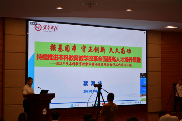 本站讯(记者 何杰)10月9日上午,beat365在科技楼学术报告厅召开本科教育教学审核评估线上启动会,会议以线上线下相结合的方式进行。教育部本科教育教学审核评估专家组组长、武汉理工大学原副校长张安富,副组长、江西农业大学原校长赵小敏,以及全体审核评估专家组成员、项目管理员、秘书组成员在线参加会议;省教育厅二级巡视员杨联愚,宜春市人民政府党组成员、副市长严旭辉,省教育厅教育督导处二级调研员王景定,省教育评估监测研究院高教所副所长李志军,全体校领导、各部门主要负责人、各教学院党政负责人以及教师、辅导员、学生代表等参加线下会议。会议分为两个阶段进行,第一阶段由校党委副书记、校长蔡海生主持。